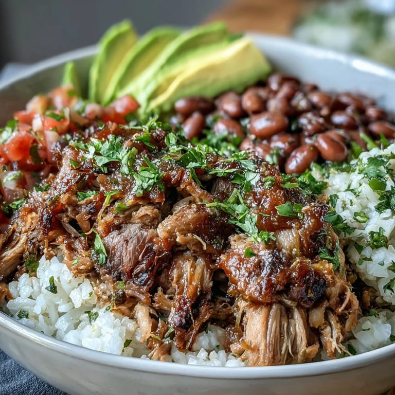 Save to Pinterest My friend Marco called me one Tuesday afternoon, frustrated that he'd been eating the same sad desk lunch for weeks. I decided to make him a carnitas bowl the next day, and when he took that first bite, he went completely quiet—the kind of quiet that means something just clicked. That's when I realized this dish isn't just food, it's the kind of meal that makes people pause and actually taste what's in front of them.