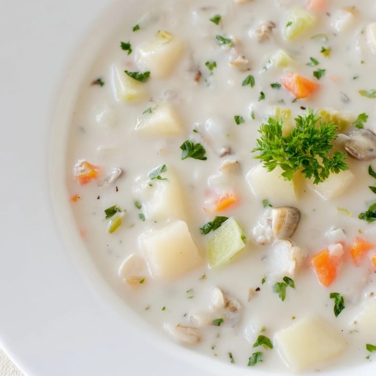 Save to Pinterest There's something about the smell of clams hitting steam that pulls you right back to a particular afternoon at a fish market in Portland, where I watched a woman argue cheerfully with the fishmonger about whether her clams were fresh enough. She won, obviously, and later that week I recreated what I imagined she'd make—this chowder, thick and briny and honest, the kind of soup that tastes like it's been made the same way for generations but somehow feels brand new each time you ladle it into a bowl.