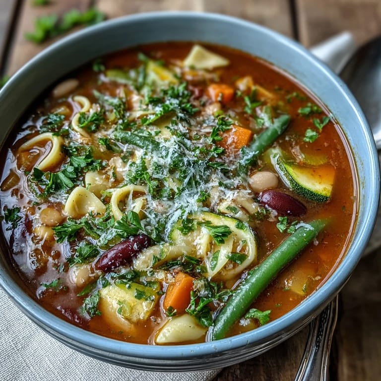 Save to Pinterest I used to think soup was just a side dish until a heavy rainstorm trapped me in my kitchen with a half empty pantry. I started chopping whatever was in the crisper drawer and the rhythm of the knife on the wood felt incredibly soothing. By the time the broth was bubbling the windows had fogged up and the whole house smelled like an Italian garden. This minestrone was born from that quiet afternoon of making do with what I had. It turned out to be the most comforting meal I had cooked all year.