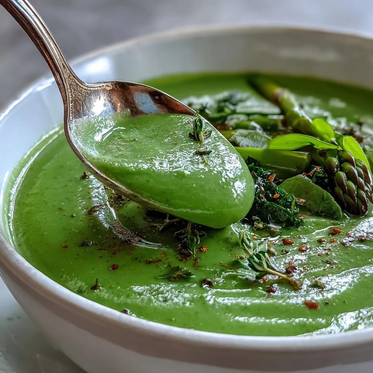 Save to Pinterest There's something about green soup that feels like drinking wellness from a bowl. My kitchen filled with steam one chilly afternoon when I decided to use up an armful of vegetables before they wilted, and what emerged was this impossibly creamy, vibrant green soup that tasted nothing like I expected—rich and nourishing without a drop of cream. My partner took one spoonful and asked what restaurant I'd stolen the recipe from, which honestly made my week. That moment taught me that the simplest ingredients, blended with intention, can become something genuinely special.