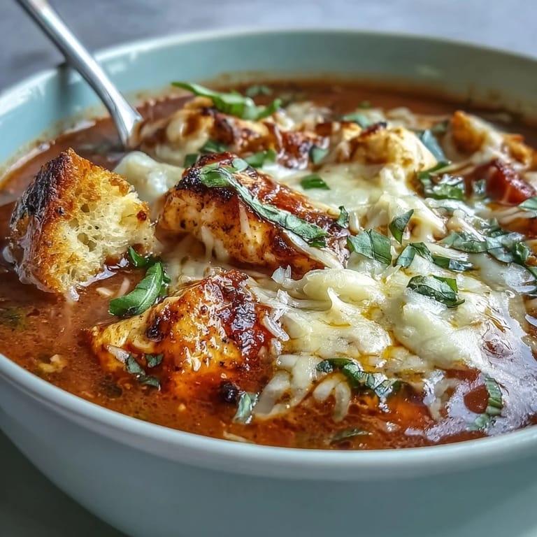 Save to Pinterest I remember staring at a leftover grill pan and watching a cold rain hit the window wishing I could turn last night grilled chicken into something warm. My kitchen smelled like charred herbs and simmered tomatoes as I started experimenting with this soup base. It felt like a cozy hug in a bowl capturing everything I love about a classic Parmesan dinner without the heavy breading. This recipe became my go to whenever the weather turns grey and I need comfort fast.